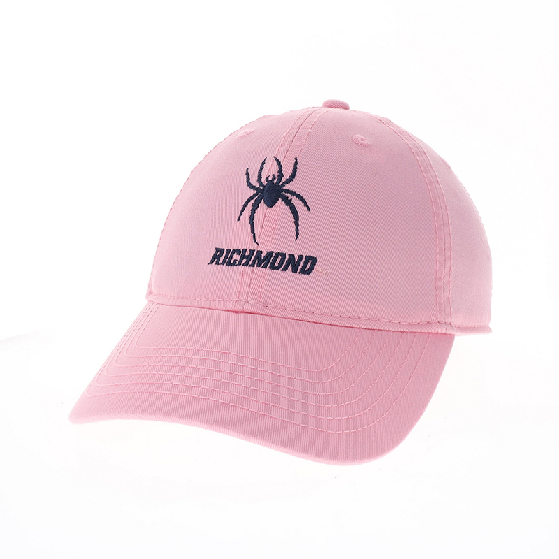 Introducing our classic Legacy Stock Cap in pink, featuring the University of Richmond mascot, the Spider, elegantly embroidered over the word 'Richmond' in navy thread. Made with 100% cotton, this timeless cap combines comfort with style, making it the perfect accessory for any loyal Spider fan. Show your pride for the University of Richmond with this stylish and high-quality cap that will keep you looking sharp whether you're on campus or out and about in town.